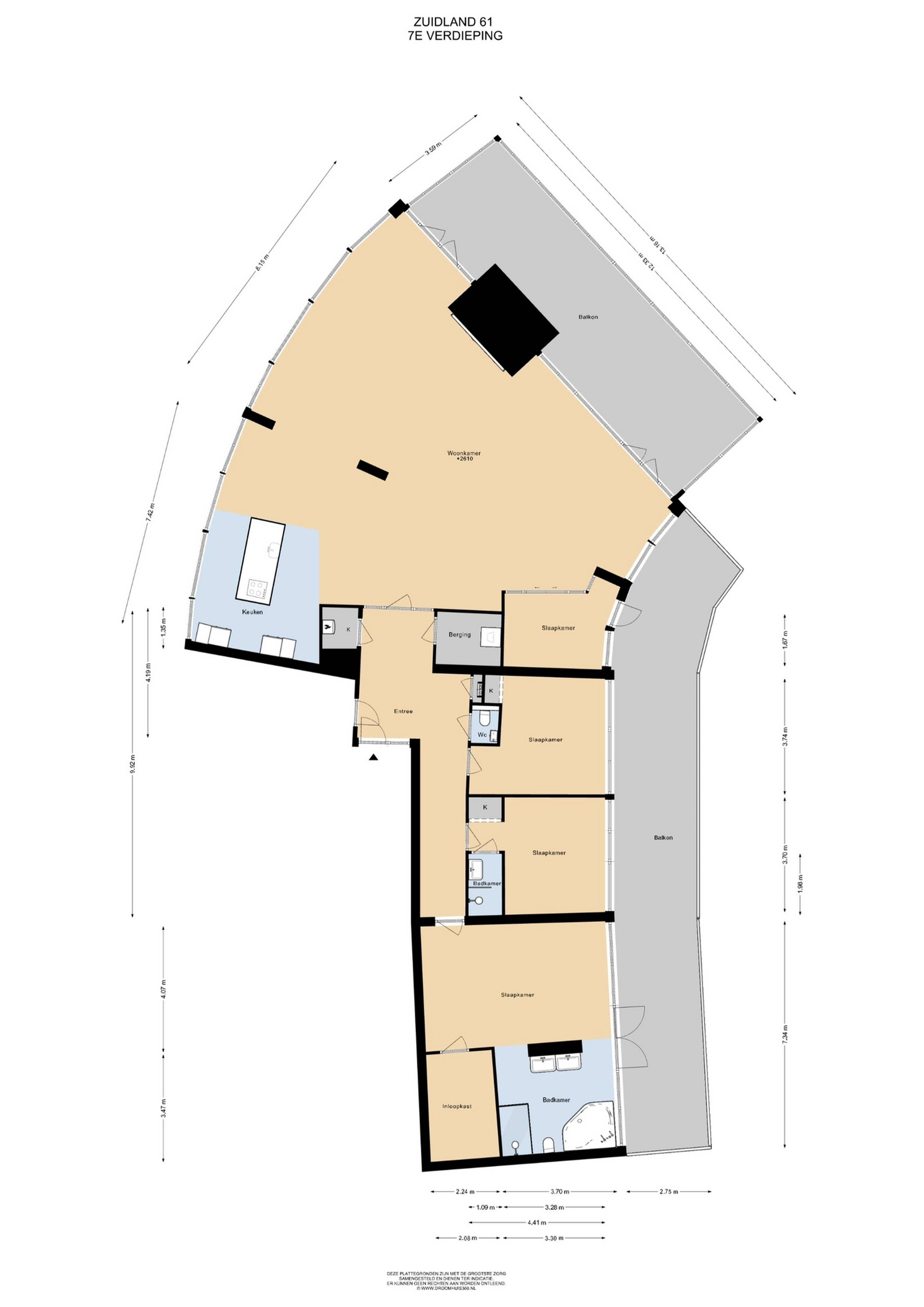 Via de lift naar de 7de etage bereikt u het penthouse. De dubbele entree, regulier en via de directe toegang vanuit de lift benadrukt nog eens het penthouse gevoel. Bij binnenkomst een riante en lichte verbindingshal met toegang tot de woonkamer. De woonkamer is overweldigend! Dat Is het gevoel dat iedereen zal bekruipen bij binnenkomst in deze fantastische woonruimte. Een ontelbaar aantal ramen tot aan de grond, lichtinval vanuit alle kanten en ook overal verbindingsdeuren naar de omliggende buitenruimten. Kortom, een echt penthouse zoals u dat van een penthouse mag verwachten. De indelingsmogelijkheden zijn legio door de maar liefst ca. 140m² vrije ruimte. De gehele ruimte is van een comfortabele vloerverwarming voorzien. De wanden zijn in het gehele penthouse glad gestuukt. De grijze plavuizen vloer is drempelloos gelegd in de living en de hal. De vloerverwarming zorgt in combinatie met de airconditioning voor een volledig naar wens te regelen klimaat. Naast de 2x openslaande deuren naar de serre en het terras zijn er ook nog deuren naar het zeembalkon aan de buitenring.