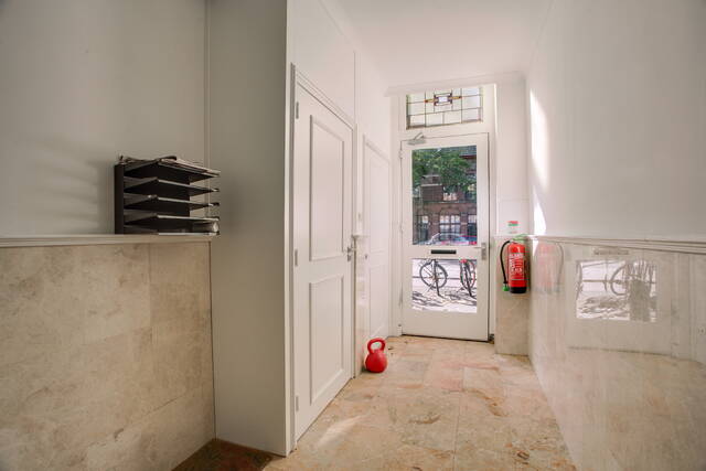 Bij binnenkomst via de gezamenlijke entree kom je via de trap op de tweede verdieping. Het appartement heeft een lichte woonkamer met open keuken. De keuken is voorzien van diverse inbouwapparatuur en biedt voldoende werk- en kastruimte.