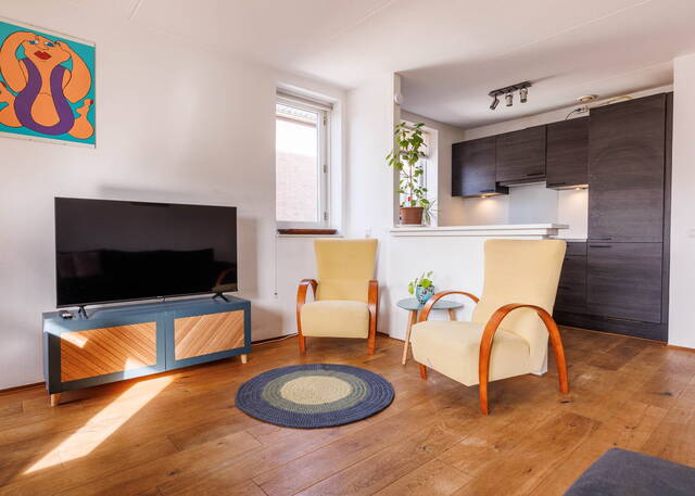 De heerlijke ruime en zonnige woonkamer is door de hoekligging en de vele ramen opvallend licht en daardoor heb je ook vanaf alle zitplekjes fraai uitzicht. De moderne open keuken beschikt over diverse inbouwapparatuur o.a. een 4-pitsgasfornuis, een combi oven/magnetron, een vaatwasser, een koel-/vries combinatie en een ingebouwde afzuigkap in de bovenkastje. Op het gezellige balkon (zuiden) heb je veel privacy en kan je heerlijk genieten van het zonnetje en het uitzicht.