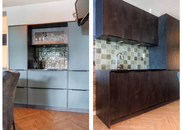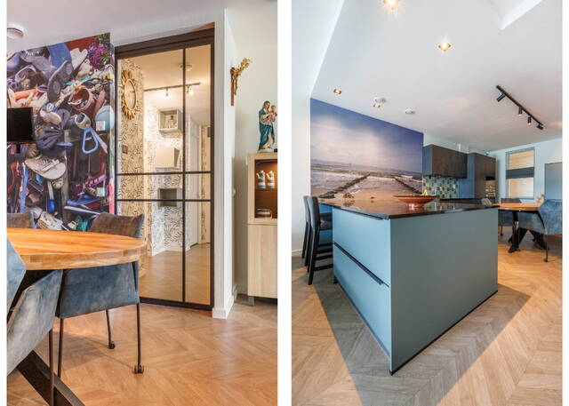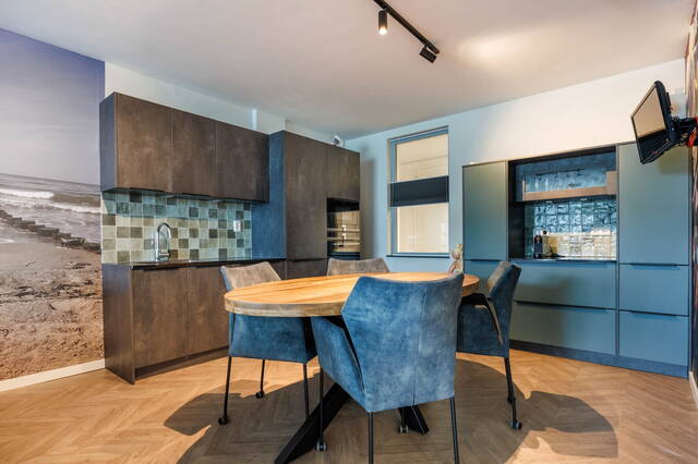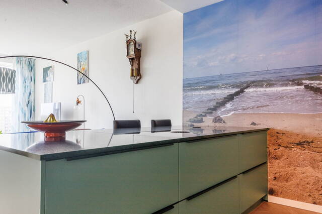 Ruime hal met een gezellige nis met zitje en toegang tot alle ruimtes. De ruime woonkamer heeft een open grote luxe woonkeuken met kook(schier)eiland met zitje en diverse inbouwapparatuur zoals o.a. een inductiekookplaat met ingebouwde afzuiging, oven, magnetron, vaatwasser en grote koelkast. De sfeervolle keuken bestaat uit drie delen, een kookeiland, een deel met spoelbak en een deel met een gezellige koffiecorner. Meer dan voldoende werk- en opbergruimte dus!