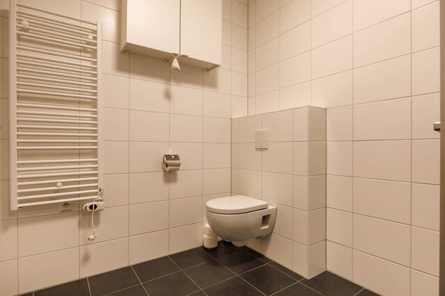 Vanuit de woonkamer is het gezellige balkon/loggia bereikbaar. Daarnaast bevinden zich de twee royale slaapkamers waarvan er één zo ruim is dat daar, naast het slaapgedeelte, bijvoorbeeld ook nog een werkplek of kleedruimte kan worden gecreëerd. De ruime moderne badkamer beschikt over een inloopdouche, een wastafel/spiegel, mechanische ventilatie, een toilet en een designradiator. In de hal bevindt zich nog een separaat toilet met fonteintje. Ook is er nog een inpandige berging/technische ruimte waarin, naast extra bergruimte, de technische installatie zich bevindt voor de WTW en de wasopstelling.
