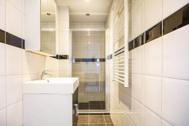 From the hallway, you have access to the bathroom with a walk-in shower and washbasin, as well as a separate toilet.