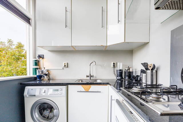Vanuit zowel de keuken als de grote slaapkamer heeft u toegang tot het balkon op het zuidwesten waar u vanaf 12 uur tot zonsondergang zon heeft. De andere slaapkamer biedt toegang tot het andere balkon aan de voorzijde van het appartement waar u in de ochtend heerlijk van de zon en het uitzicht kunt genieten. Aparte, gesloten keuken voorzien van verschillende inbouwapparatuur o.a. een 4- pits gaskookstel, afzuigkap, vaatwasser, losse koel- vries combinatie en een aansluiting wasmachine. Vanuit de hal heeft u toegang tot de badkamer voorzien van een inloopdouche en wastafel. Daarnaast bevindt zich een separaat toilet.