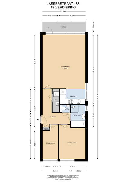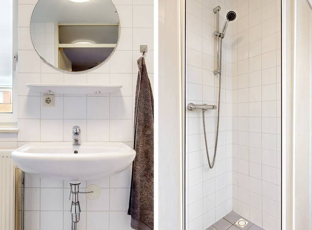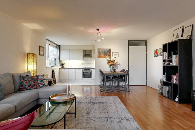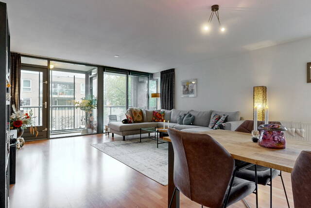 Entree, hal met meterkast, het toilet een technische ruimte met opstelplaats voor de wasmachine, droger, mechanische ventilatie-unit en CV-combi-installatie. Via de hal bereikt u de lichte, ruime woonkamer welke toegang biedt tot de serre en het balkon. De open keuken is voorzien van diverse (inbouw)apparatuur zoals een 4 pits kookplaat met afzuigkap, een koel-vries combinatie, combioven magnetron en een vaatwasser. Aan de andere kant van het appartement bevinden zich twee ruime en lichte slaapkamers en de badkamer. De badkamer is voorzien van een ligbad, aparte douche, een wastafel en een verwarmingsradiator.