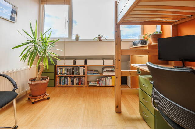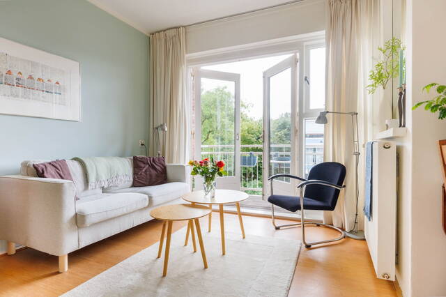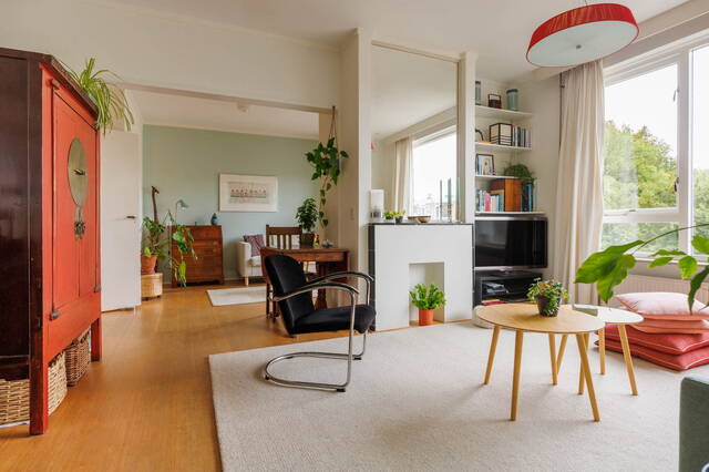 Very Spacious and Bright Maisonette with Five Bedrooms, Two Bathrooms, Two Balconies, and a Large Storage Room. The apartment is located on the 3rd and 4th floors of a well-maintained apartment complex and offers balconies at both the front and rear. The rear balcony overlooks the large communal courtyard garden. Thanks to the many windows, the apartment enjoys an abundance of natural light. A beautifully maintained and charming maisonette in the lovely Professorenwijk area!