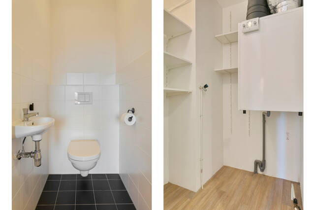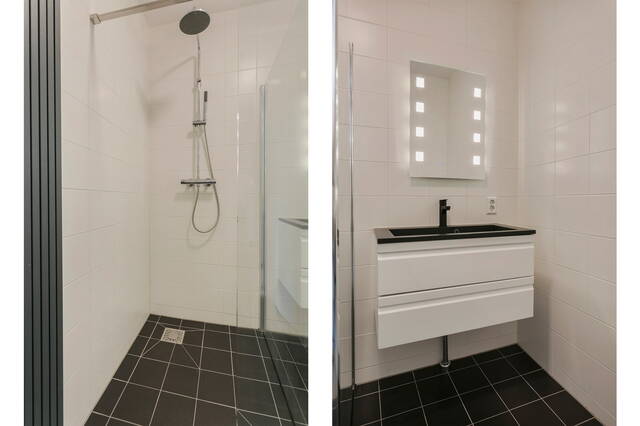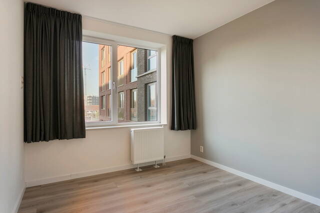 2de verdieping: Entree met hal. Twee lichte slaapkamers. Luxe badkamer met inloopdouche, glazen douchewand, designradiator, wastafel in meubel en spiegel met ingebouwde verlichting. Technische ruimte met opstelling warmte terugwininstallatie en wasmachine aansluiting. Apart toilet met fontein. Ruime en lichte woonkamer met toegang tot het zonnige balkon. Moderne open keuken voorzien van bar-opstelling, vaatwasser, keramische kookplaat, afzuigkap, koel/-vriescombinatie en een combi-oven. Het appartement is volledig voorzien van een keurige laminaatvloer.