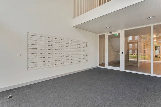 begane grond: afgesloten gemeenschappelijke en ruim opgezette entree met brievenbussen, bellentableau, trappenhuis en twee liften.