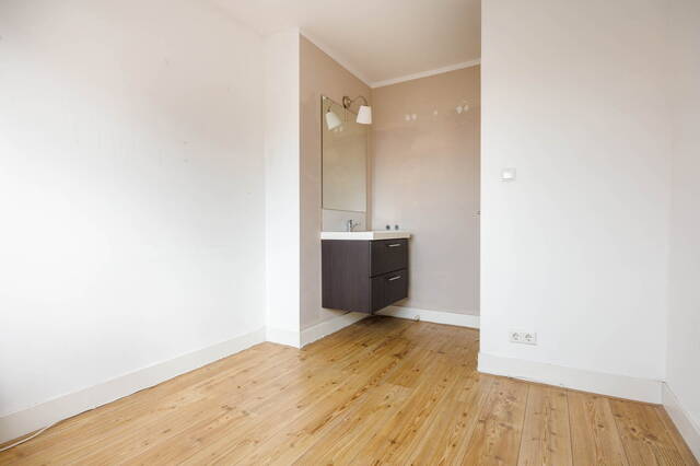 Long landing giving access to the three bedrooms and the bathroom. Two cosy bedrooms with a rear dormer, each with a washbasin unit with mirror, and stairs leading to a mezzanine with a window, currently used as a sleeping area. There is also a spacious and sunny bedroom at the front with a dormer and a washbasin unit with mirror. The generous bathroom features a walk-in shower with glass screen, a toilet, radiator, and mechanical ventilation. The washing machine and dryer connections are also located here.