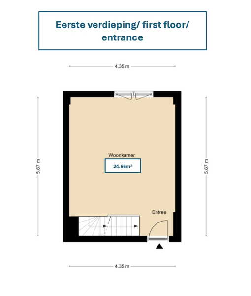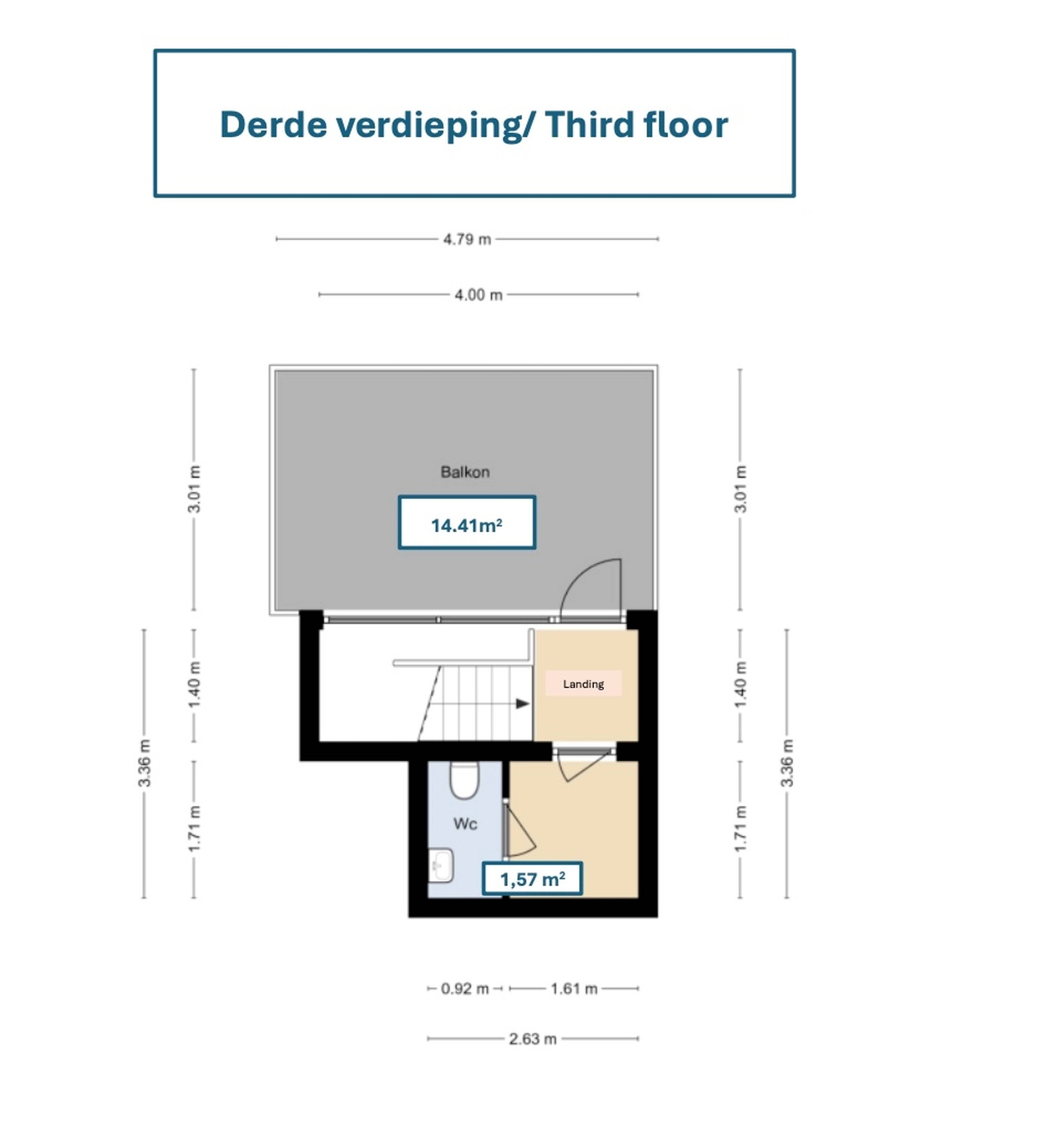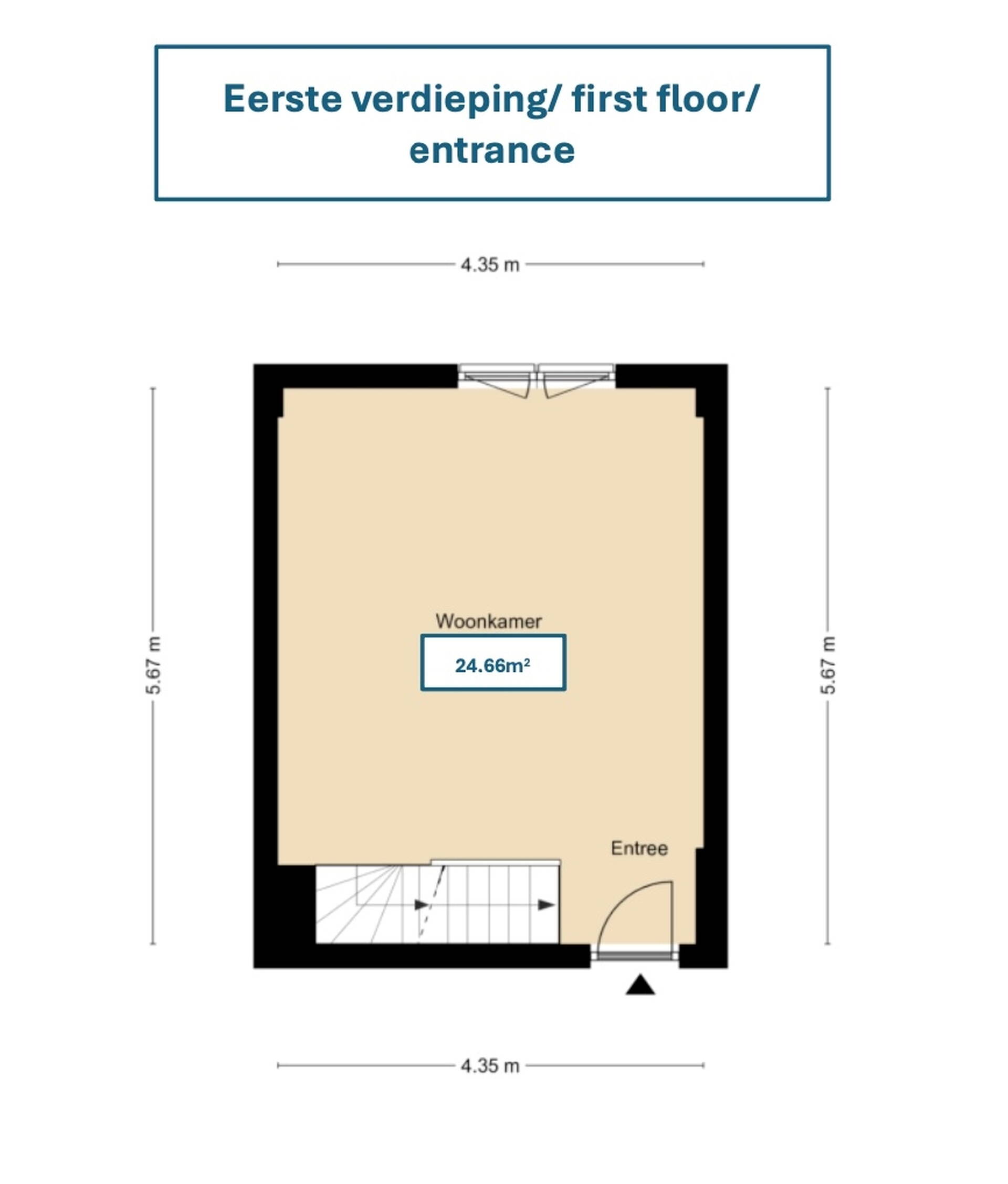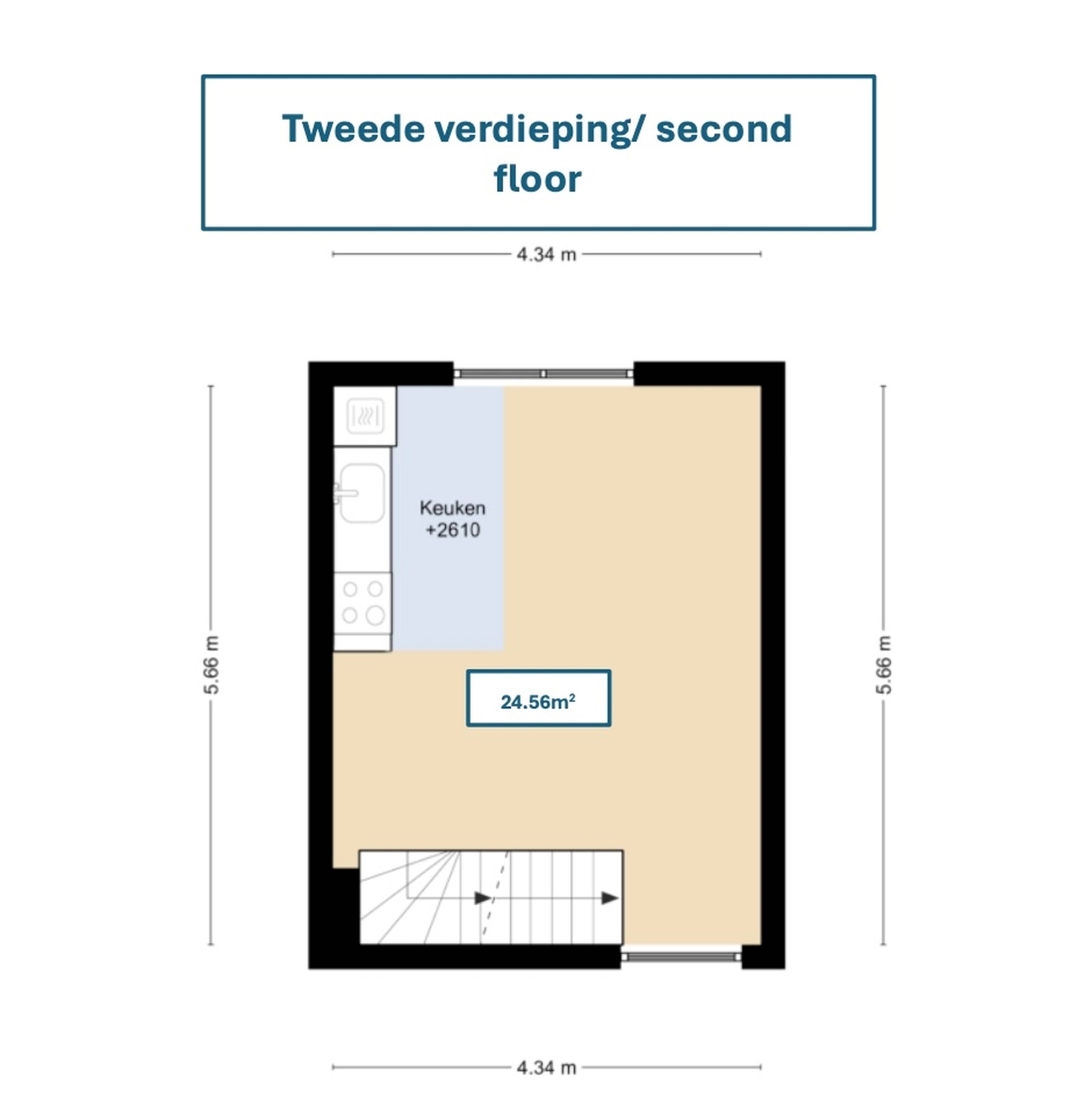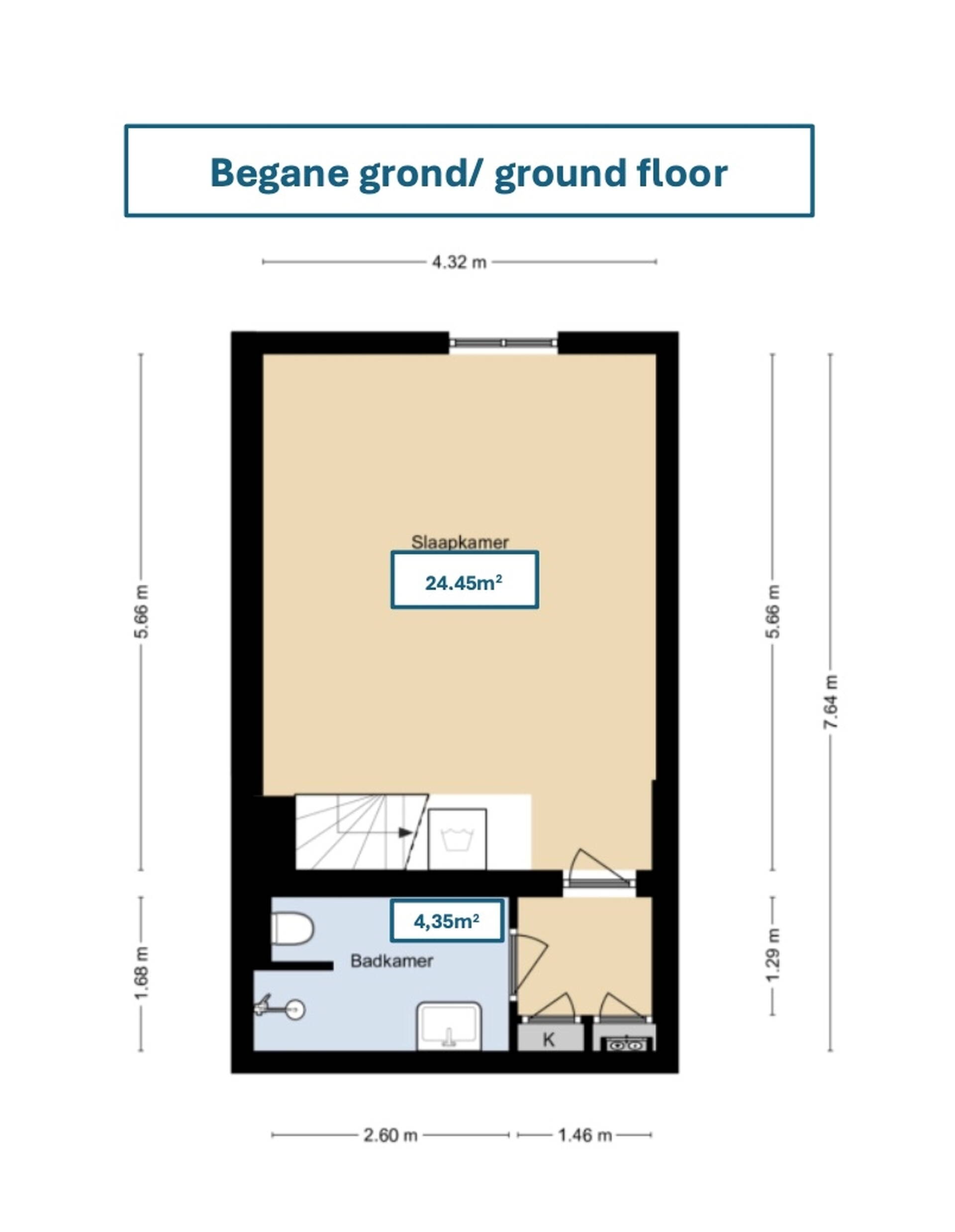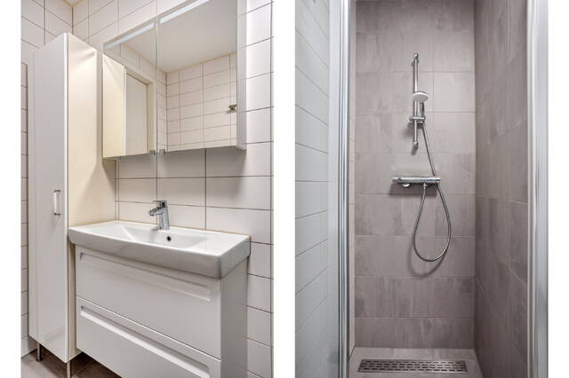 Via de vaste trap op de eerste verdieping bereik je de ruime slaapkamer en moderne badkamer. De badkamer is voorzien van een inloopdouche, toilet en een wastafelmeubel. Ook de wasmachine en droger zijn handig geïntegreerd.