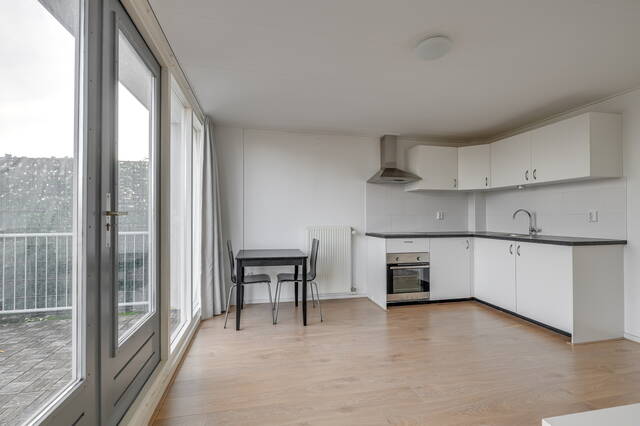 Het appartement heeft een gebruiksoppervlakte van circa 31 m², maar voelt door de slimme indeling en het overvloedige natuurlijke licht aanzienlijk ruimer aan. De woonkamer is voorzien van grote ramen en openslaande deuren naar het dakterras, wat zorgt voor een prettige, open sfeer. Dankzij de ligging op het oosten geniet je hier van de zon in de ochtend. Perfect om rustig met een kop koffie op je dakterras te zitten.