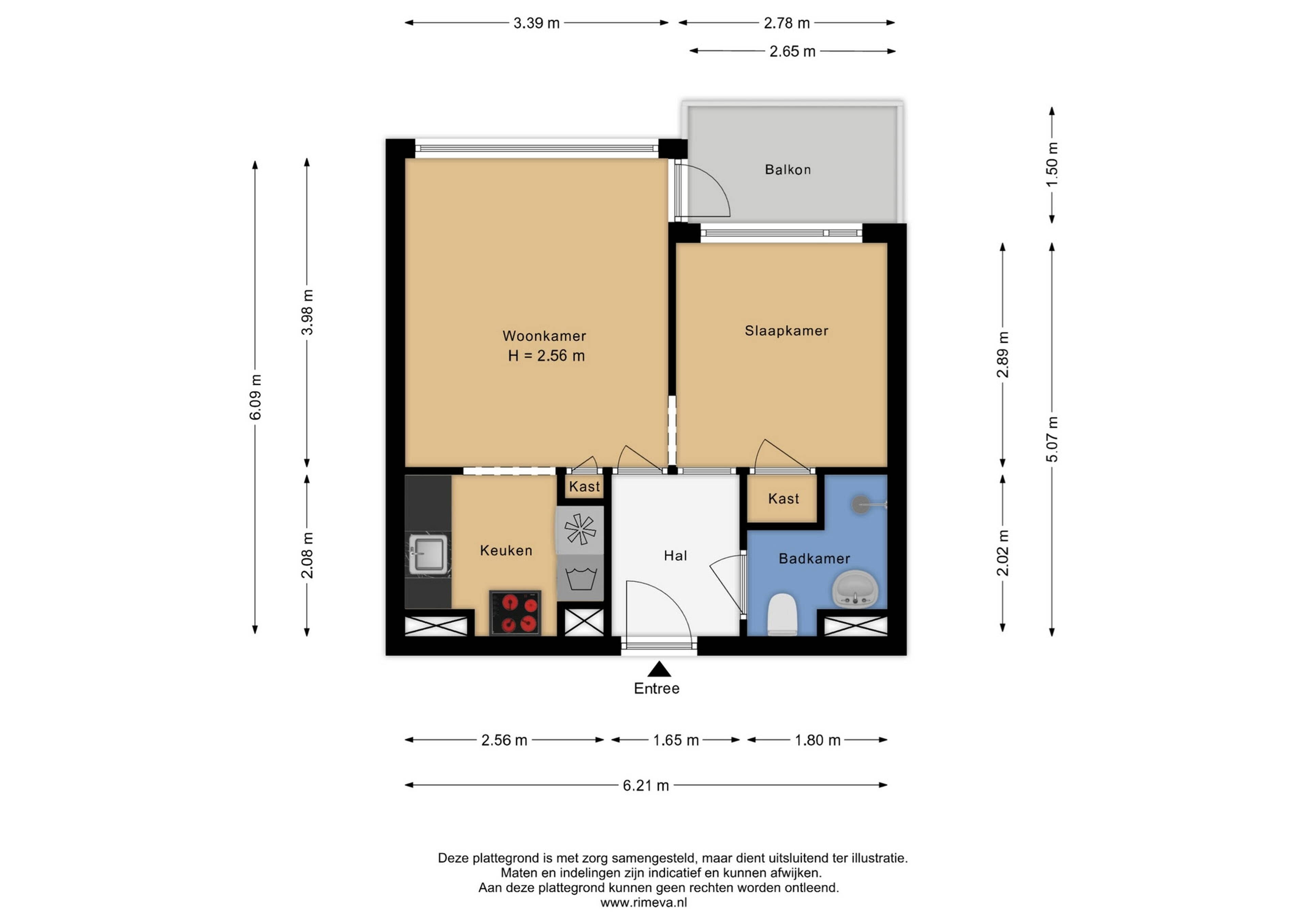 Het gehele appartement is voorzien van een laminaatvloer (met uitzondering van de keuken).