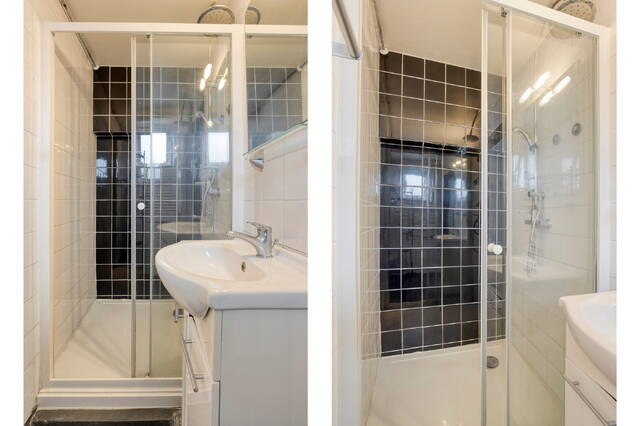 Het appartement beschikt over twee slaapkamers. De slaapkamer aan de achterzijde geeft toegang tot het zonnige balkon op het zuiden. De slaapkamer aan de voorzijde is eveneens licht dankzij het grote raam en biedt tevens toegang tot de badkamer. De badkamer is ingericht met een douche, wastafel en radiator.