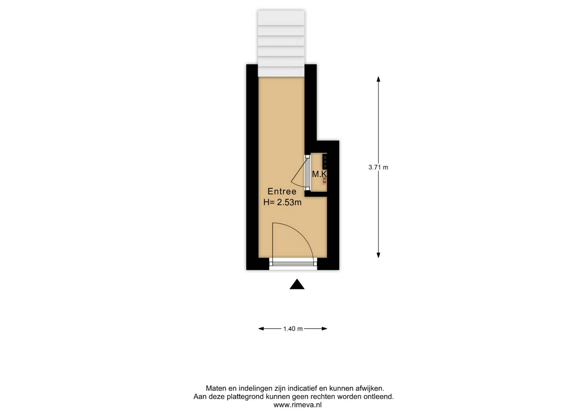 Entree van het appartement met meterkast, garderobe en trapopgang naar de eerste verdieping. De hal is breed opgezet, waardoor het plaatsen van een traplift hier uitstekend mogelijk is. Dit maakt het appartement zeer geschikt als levensloopbestendige woning.