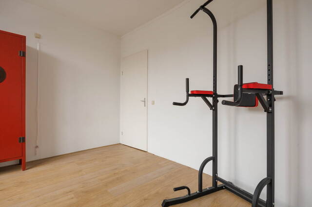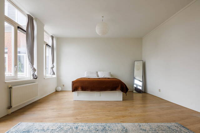 De masterbedroom is zeer ruim en bevindt zich aan de rustige achterzijde van het appartement, wat zorgt voor optimale stilte en ontspanning. Vanuit deze slaapkamer heeft u toegang tot het tweede balkon met uitzicht op de goed onderhouden binnentuin.