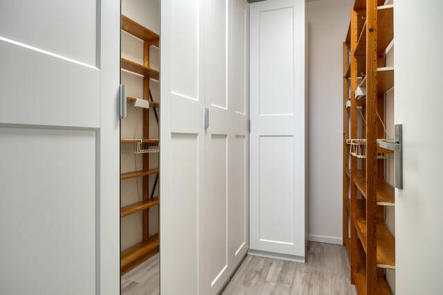 The apartment is part of a well-maintained and stylish complex built in 2007 and is fully designed for comfortable living. The spacious and bright living room is openly connected to the modern kitchen, which is equipped with all necessary built-in appliances. The property further features two generous bedrooms, a walk-in closet, a modern and fully equipped bathroom, a separate toilet, and a practical internal storage room with a washing machine and dryer.