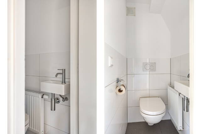 Op de derde verdieping vind je opnieuw een overloop met een apart toilet en fonteintje. Daarnaast bevindt zich hier de ruime en lichte woonkamer met een moderne open keuken. De keuken is compleet uitgerust met een inductiekookplaat, afzuiging, vaatwasser, koelkast, vriezer en wasmachine.