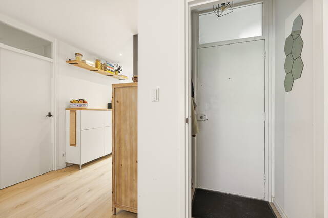 Afgesloten gezamenlijke entree met intercominstallatie, bellentableau en trappenhuis. Tevens bevindt zich hier de eigen berging.