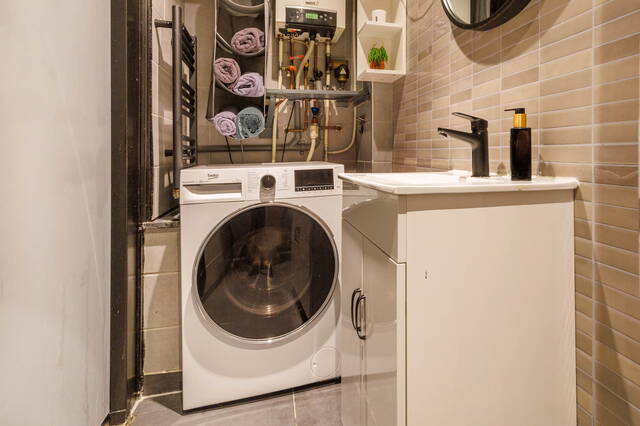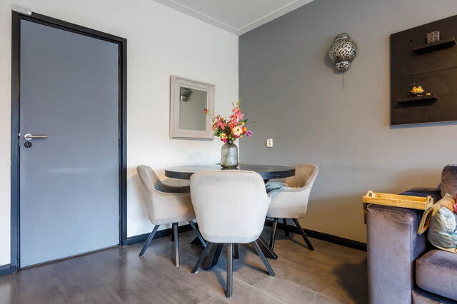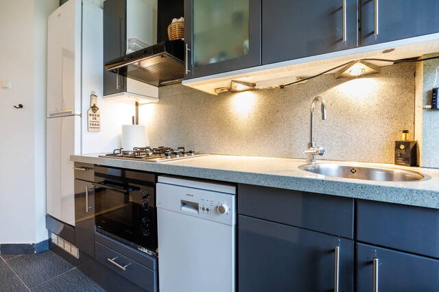 De gesloten keuken is voorzien van diverse inbouwapparatuur, zoals een vaatwasser, een 4-pits gaskookstel, een afzuigkap en een koel-vriescombinatie. Vanuit de keuken is er toegang tot de moderne badkamer met inloopdouche, wastafelmeubel, wasmachineaansluiting en opstelling van de cv-ketel. Het tweede balkon is eveneens via de keuken bereikbaar.