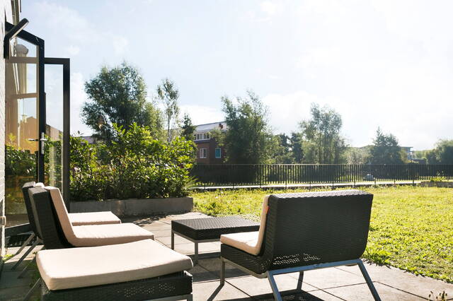 Very luxurious 2 room apartment on the 1st floor, provided with luxurious kitchen, jacuzzi, roof terrace, storage box and private parking in the basement. Located at short biking distance from the City Center and close to exit roads towards Amsterdam, The Hague (A4) and Utrecht (N11).