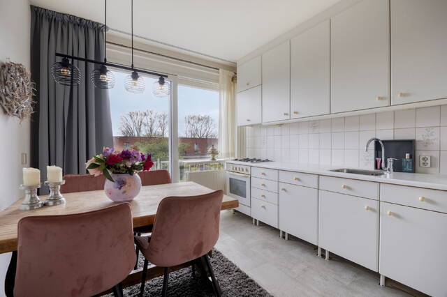 Located on Burggravenlaan in Leiden, this well-maintained and bright apartment is situated on the third floor of a characteristic 1950s complex. The property offers a spacious and atmospheric living room with an open kitchen, three bedrooms, and a compact but functional bathroom. From the living room, you step directly onto the generous south-facing balcony, where you can enjoy the sun throughout the day. In the basement level, there are also two practical storage rooms.