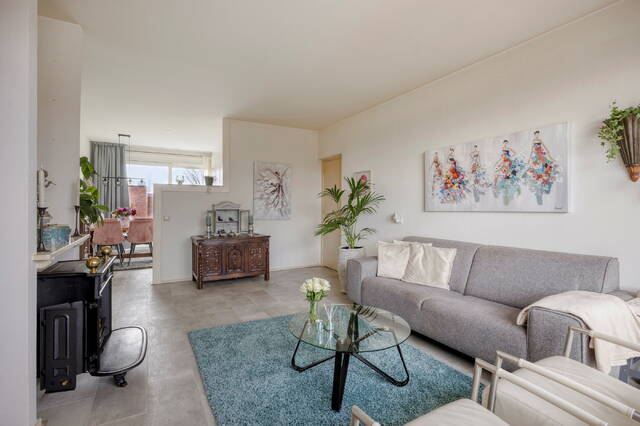 De achterzijde is voorzien van kunststof kozijnen en een kunststof schuifpui bij de keuken, wat zorgt voor comfort en onderhoudsgemak. Aan de voorzijde zorgen de grote houten raamkozijnen juist voor veel lichtinval en een ruimtelijk gevoel in de woning.