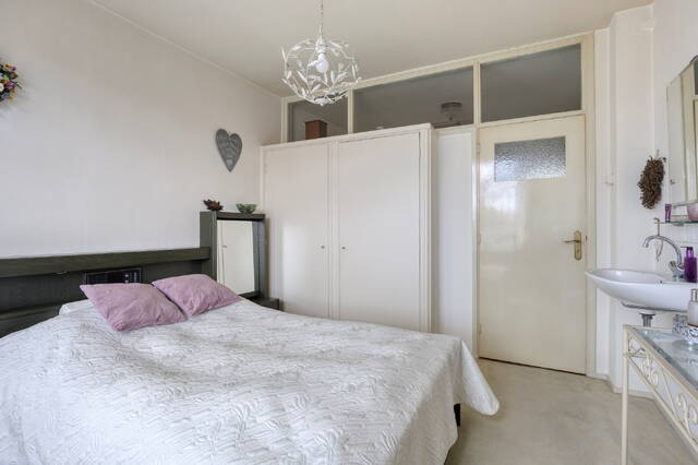 De woning beschikt over drie slaapkamers. Twee kamers liggen aan de achterzijde, terwijl de royale hoofdslaapkamer zich aan de voorzijde bevindt en toegang geeft tot het balkon aan de voorzijde. Deze hoofdslaapkamer is daarnaast voorzien van een wastafel.