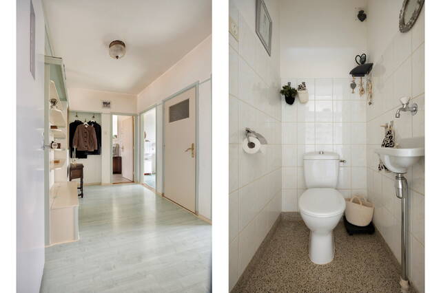 The apartment has a spacious entrance hall with a toilet and meter cupboard, from which almost all rooms are accessible.