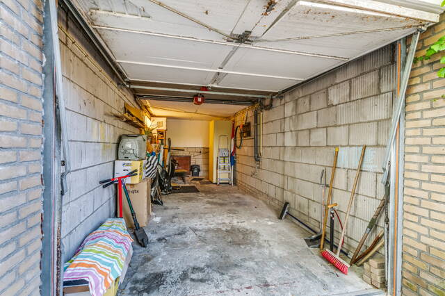 Spacious driveway with large garage that offers space for more than just a car. Via the stairs at the front you reach the hall with a toilet and access to the spacious living room. The living room offers a fantastic view of the backyard and the adjacent park and has wide sliding doors that provide access to the balcony and the lower, very green landscaped garden along a stream. The kitchen is accessible via a staircase at the front of the house. The kitchen overlooks the living room and has a balcony at the front of the house. Under the house there is an extra storage room, accessible from the garage and the backyard, ideal for storing non-daily items.