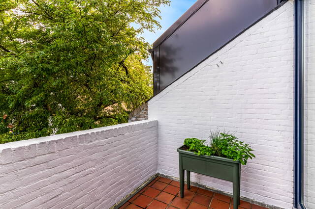 On the second floor there are two bedrooms, a bathroom and a spacious storage room with space for the washing machine and dryer, among other things. The spacious bedroom at the rear of the house has an en-suite bathroom with a bath with shower facilities and a sink with furniture. The bedroom at the front has access to a balcony.