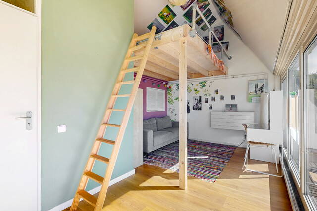 On the third floor, you reach the fourth bedroom via the landing with storage cupboard. On the landing there is a storage cupboard with the central heating system.
