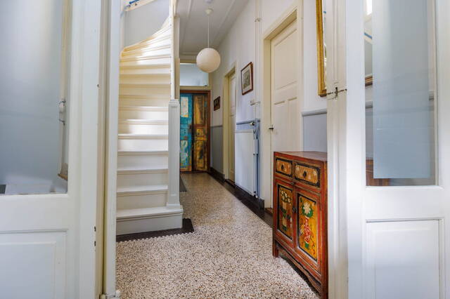 - Veel originele details in goede staat zoals glas-in-loodramen, hoge plafonds, granitovloeren, kamers en suite met schuifdeuren, erker en paneeldeuren.