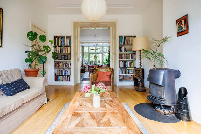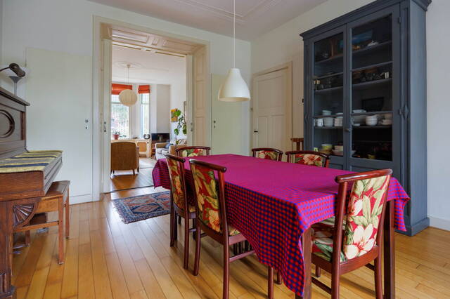 Located in the sought-after Professoren- en Burgemeesterswijk in Leiden, this generous semi-detached house (“the blue houses”) on quiet Fruinlaan offers 5 bedrooms, 2 bathrooms, a sunny front and back garden, and charming period details throughout.