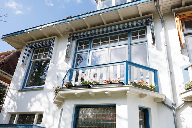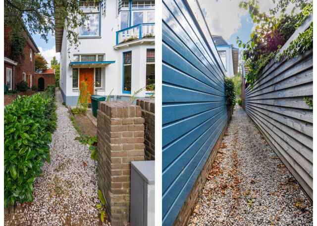 In de Professoren-en Burgemeesterswijk van universiteitsstad Leiden, aan de rustige en groene Fruinlaan staat deze royale twee-onder-een kapwoning (de “blauwe huizen”) met een grote achtertuin, een zijpad en voortuin. Deze fraaie woning met karakter heeft veel goed behouden authentieke details, zoals prachtige glas-in-lood ramen, granito vloeren, een erker, kamer-en-suite schuifdeuren, originele wandtegels, hoge plafonds en paneeldeuren. Door de hoekligging heeft de woning extra ramen in de zijgevel, wat voor veel mooie lichtinval zorgt. Verder is de woning voorzien van maar liefst vijf slaapkamers, twee badkamers en een balkon aan zowel voor- als achterzijde. De kamers aan de voorzijde boven beschikken over blauw-witte markiezen. Mede daardoor blijft het huis in de zomer heerlijk koel.