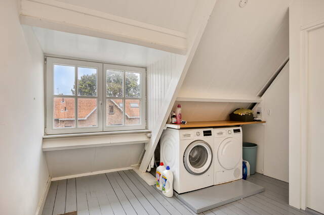 De tweede verdieping biedt een ruime voorzolder met wasmachine en droger, twee ruime slaapkamers én een extra bergruimte. Dankzij de airconditioning blijft deze verdieping zelfs op warme zomerdagen heerlijk koel.