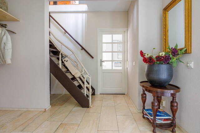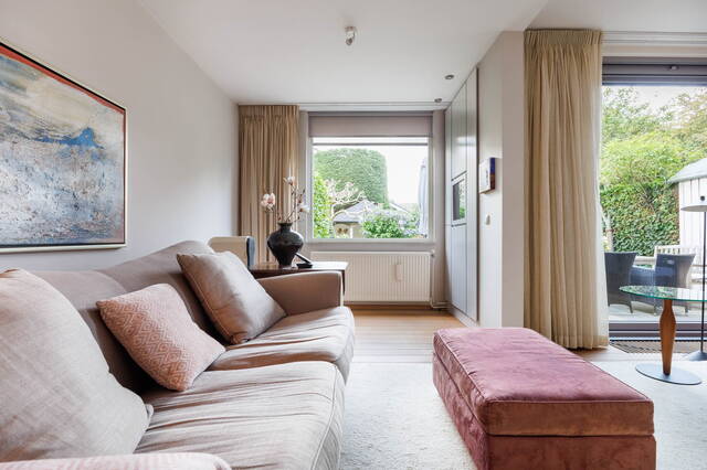 This spacious linked home is located in a lovely, green part of Merenwijk and boasts a beautifully landscaped south-facing garden. In addition to a very generous living room, the property features a garage, three (bed)rooms on the first floor, and a large attic floor with a bedroom, extra storage space, and a balcony offering stunning views of the river Zijl.