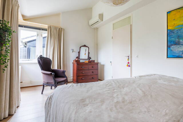 Royale overloop met veel daglicht door het zijraam. Aan de voorzijde van de woning bevindt zich een royale slaapkamer met airco en een inloopkast. Aan de achterzijde van de woning vind je twee ruime en lichte slaap-/werkkamers waarvan 1 tevens beschikt over een wastafel. De moderne en luxe badkamer (2021) is ruim en beschikt over een regendouche, een toilet, een handdoekenradiator en dubbel wastafelmeubel met spiegel, twee zwevende kasten, ingebouwde verlichting en mechanische ventilatie. In de badkamer bevindt zich tevens de opstelling voor de wasmachine en droger.