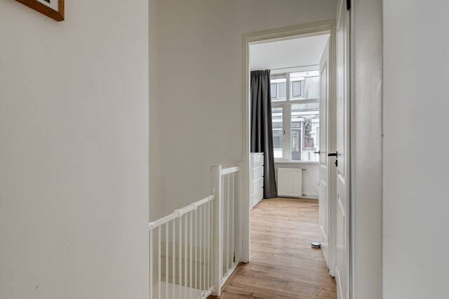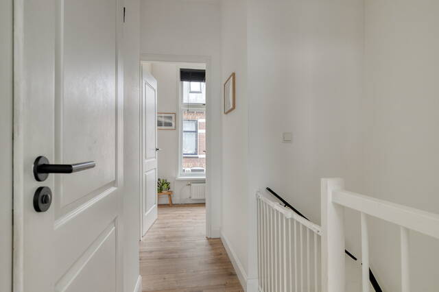 Op de eerste verdieping leidt de overloop naar drie slaapkamers, waarvan één royale kamer aan de achterzijde en twee aan de voorzijde. De twee slaapkamers aan de voorzijde zijn goed te gebruiken als kinder- of werkkamer en beide voorzien van rolluiken. De luxe badkamer, in 2021 volledig vernieuwd, is centraal gelegen en voorzien van een inloopdouche, wastafelmeubel en een tweede toilet.