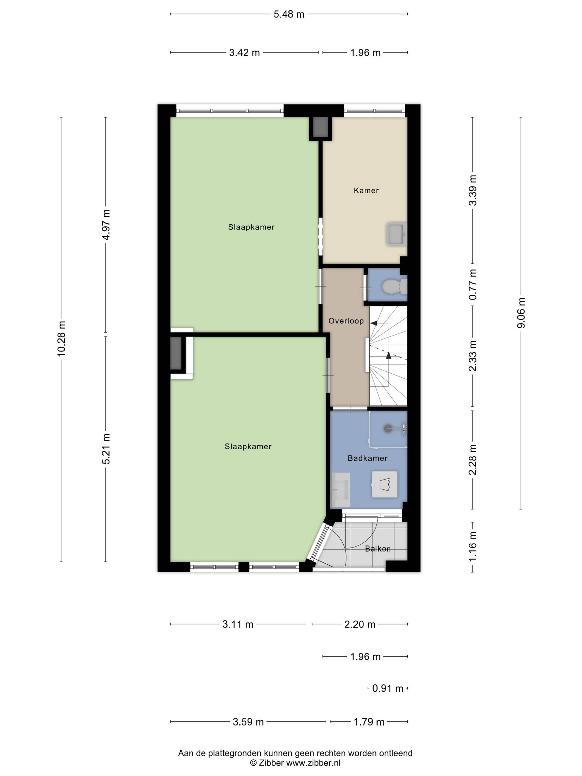 Op de eerste verdieping bevinden zich twee ruime slaapkamers, een apart toilet en badkamer. De derde kamer op deze verdieping is bereikbaar vanuit de achter slaapkamer en is te gebruiken als kantoor, kleding- of hobbyruimte. Door het terugplaatsen van de deur en tussenwand is een derde slaapkamer te realiseren. De badkamer met douche, wastafelmeubel en aansluiting voor de wasmachine geeft toegang tot het inpandige balkon, welke tevens via de voorslaapkamer te bereiken is.