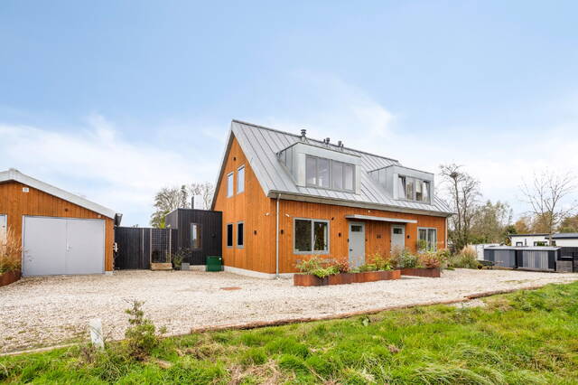Deze woning is volledig gasloos en voorzien van een warmtepomp, zonnepanelen, vloerverwarming in de gehele woning en HR++-glas in aluminium kozijnen. De zinken felsdakbedekking en houten gevelafwerking maken het geheel bovendien onderhoudsvrij. Het platte dak is voorzien van een groendak, wat niet alleen bijdraagt aan isolatie en biodiversiteit, maar ook de woning een natuurlijke uitstraling geeft. De gevels, tuin en brug zijn voorzien van een lichtplan met schermerschakeling, wat zorgt voor sfeervolle verlichting in de avond. Het resultaat is een woning die stijl, duurzaamheid en gemak moeiteloos combineert – en daarbij een energielabel A++ heeft.