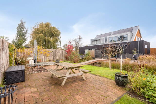 De woning ligt op een idyllische plek waar natuur en comfort elkaar ontmoeten. De fraai aangelegde, professioneel ontworpen tuin op het zuidwesten biedt een weids uitzicht over het water en de omliggende weilanden. De tuin is voorzien van een natuurlijke oever waar (water)vogels zich graag laten zien, en een charmante pluktuin waar eigen bloemen of kruiden kunnen worden gekweekt. Regelmatige bezoekers zijn ijsvogels, fazanten en zelfs vossen, wat bijdraagt aan de bijzondere sfeer van deze locatie. Het grote hardhouten terras vormt een heerlijke plek om te ontspannen of te dineren aan het water. Dankzij het extra aangekochte perceel is de tuin uitzonderlijk royaal en biedt deze volop mogelijkheden voor tuinliefhebbers en buitenleven. De ruimte en ligging maken het mogelijk om meerdere zitjes te creëren, zodat op elk moment van de dag van de zon, de rust of het uitzicht genoten kan worden.