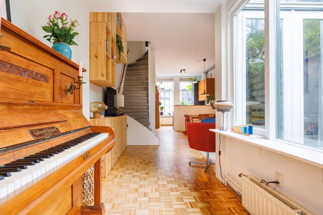 In the Rijndijkbuurt, on the edge of the Professorenwijk, you will find this charming and extended 4-room home with a delightful backyard overlooking lush greenery. On the first floor, there is a lovely roof terrace. Thanks to the roof extension, additional space has been created. In short: a bright and comfortable family home in a pleasant location!