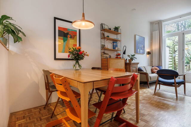 Rijndijkstraat is situated in a friendly neighbourhood and within a short cycling distance of Leiden’s historic city centre, with its many canals, restaurants, shops, and museums. In the immediate vicinity, you will find childcare facilities, primary and secondary schools, various sports clubs (hockey, tennis, and football), and Park Cronesteyn. Lammenschans and Leiden Central railway stations are a 5- and 10-minute bike ride away respectively, and the A4/N11 motorways are also easily accessible.