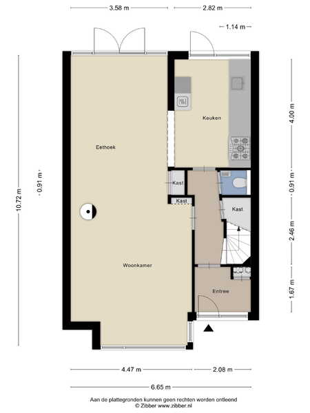 Attractive front garden and a stylish entrance. Through the vestibule with meter cupboard you enter the hallway, which provides access to the living room, the modern toilet with washbasin, the kitchen, a storage cupboard under the stairs, and the staircase to the first floor.