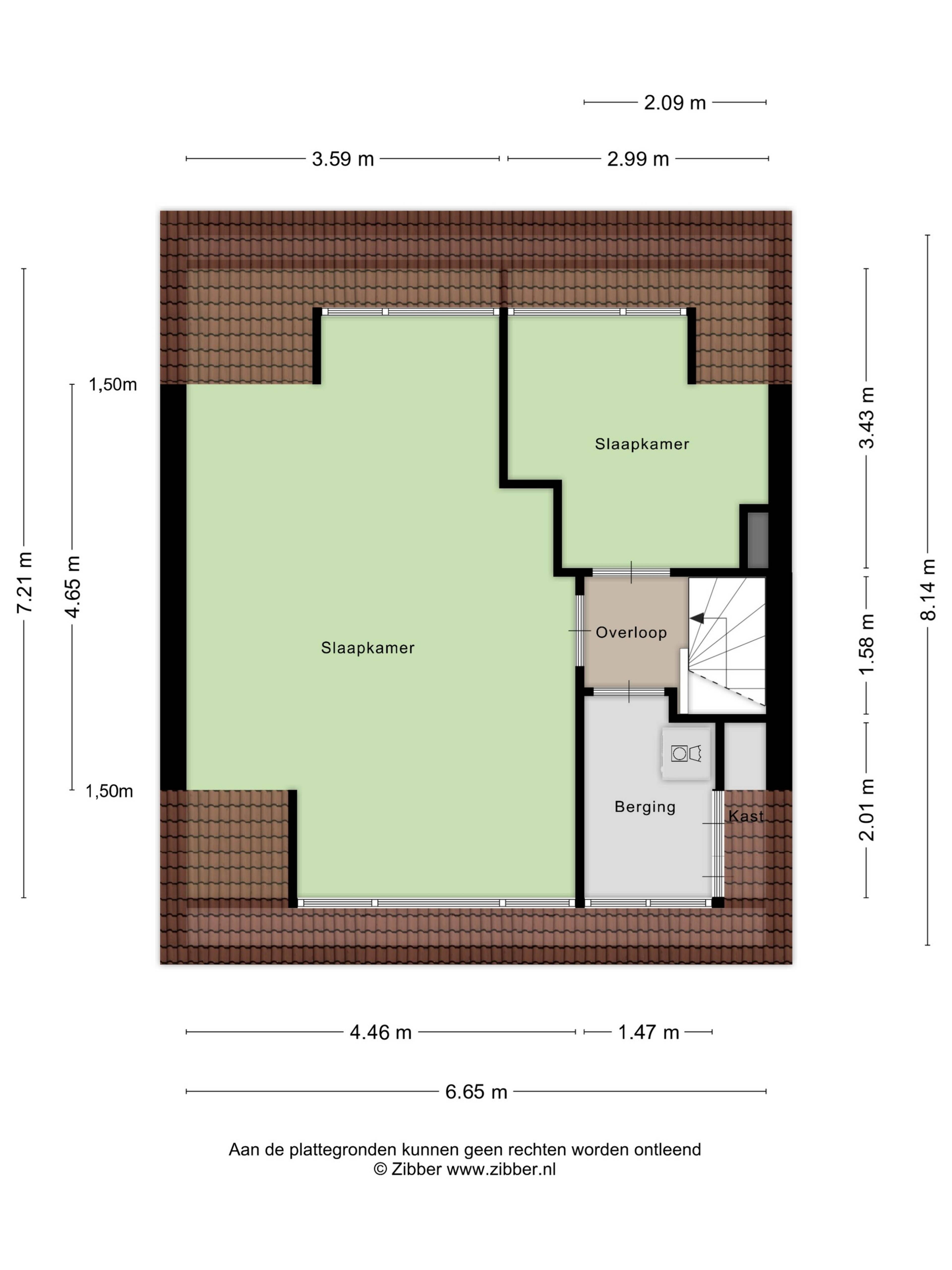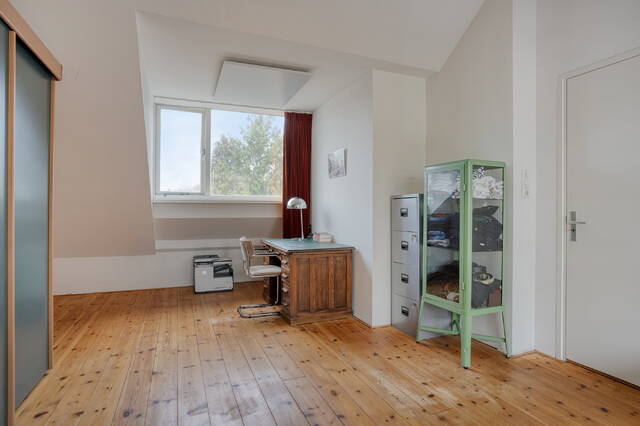 Op de tweede verdieping zorgen grote dakkapellen aan zowel de voor- als achterzijde voor twee ruime en lichte kamers, waarvan één kamer zich uitstrekt over de gehele lengte van de woning. Hierdoor ontstaat een bijzonder royale ruimte met veel daglicht en flexibiliteit in gebruik. Daarnaast is er een berging waarin de wasmachine- en drogeropstelling is geplaatst. Desgewenst kan hier eventueel een tweede badkamer worden gerealiseerd.