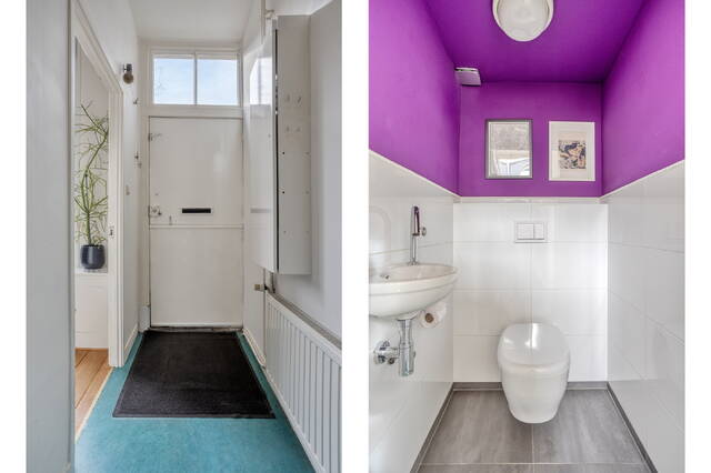 Due to the intimate nature of the street and its characteristic houses, Piet Heinstraat has the feel of a small courtyard. Through the front door you enter the hallway, which features a modern meter cupboard and a spacious toilet with washbasin.