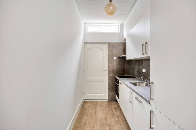 Via de hal met praktische bergkast betreedt u de woning. De zeer ruime en lichte woonkamer biedt volop leefruimte. De nieuwe keuken is voorzien van een inductiekookplaat, afzuigkap, oven, vaatwasser, koelkast en vriezer.