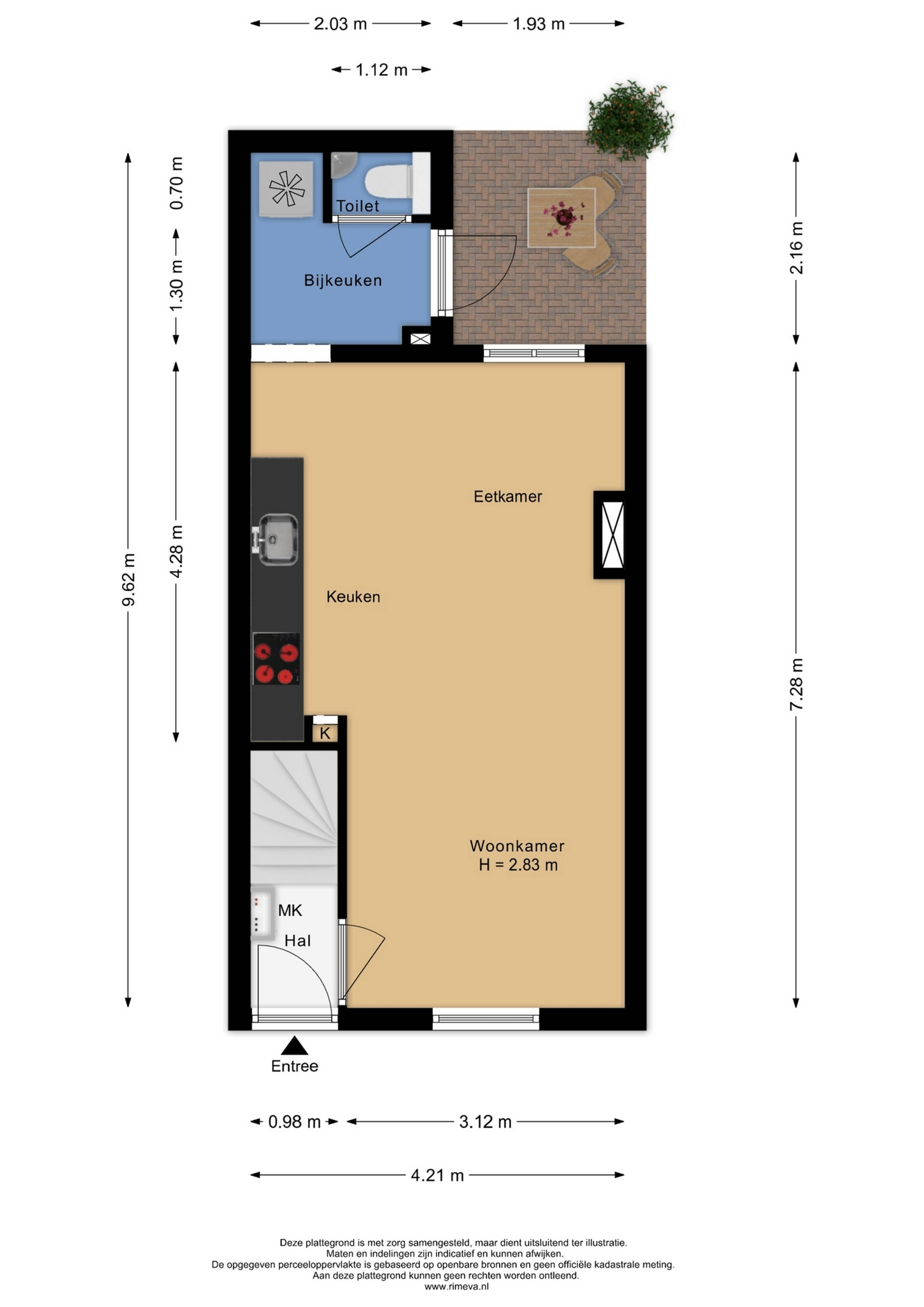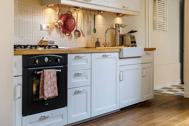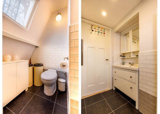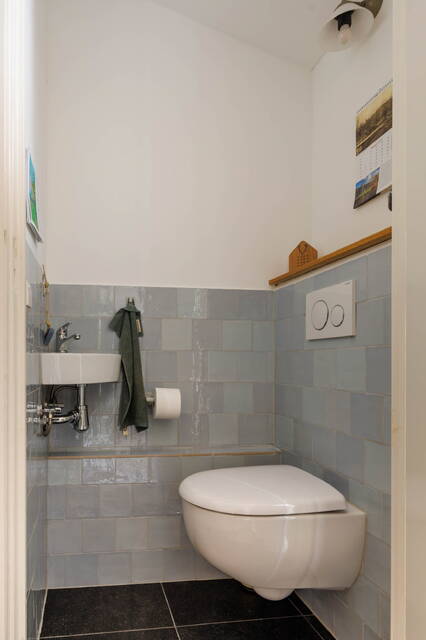 Via de keuken bereikt u de praktische bijkeuken, met een aparte ruimte voor de koel-/vriescombinatie en een separaat toilet met fonteintje. Vanuit de bijkeuken heeft u toegang tot het zonnige binnenplaatsje op het zuiden, waar u gedurende de dag kunt genieten van het zonnetje.