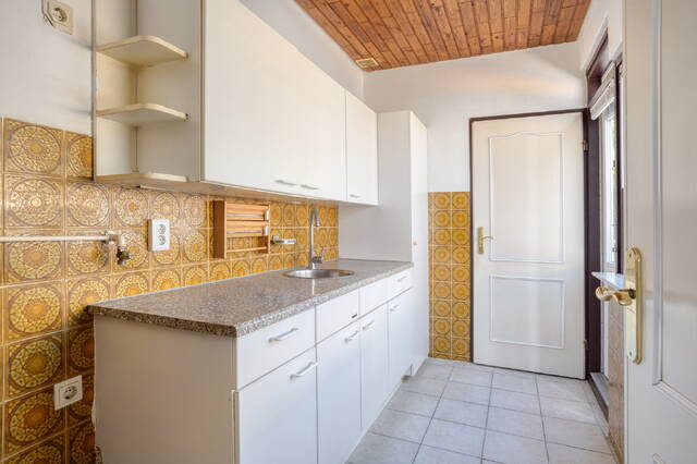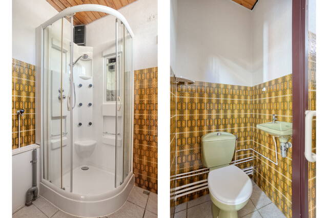 At the rear of the house, you will find the kitchen, with the bathroom and a separate toilet adjacent. The current finish is dated, but this offers an excellent opportunity to modernize the entire space and redesign it according to your own preferences.
