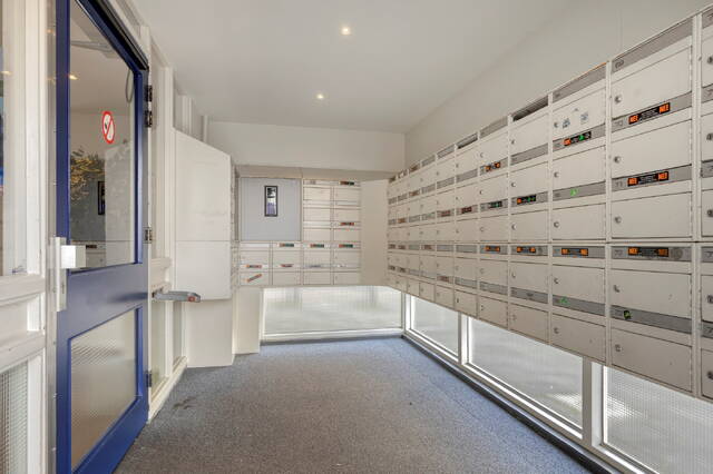Verzorgde centrale entree met bellentableau, brievenbussen, trappenhuis en liftinstallatie die toegang biedt tot de verdiepingen en de bergingen.
