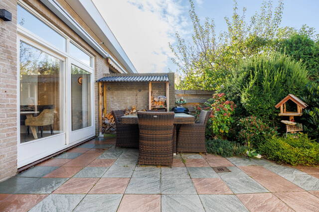 Achtertuin: gelegen op het zuidwesten, onderhoudsvriendelijk aangelegd met een ruim terras en groen. Hier kunt u de hele dag genieten van de zon.